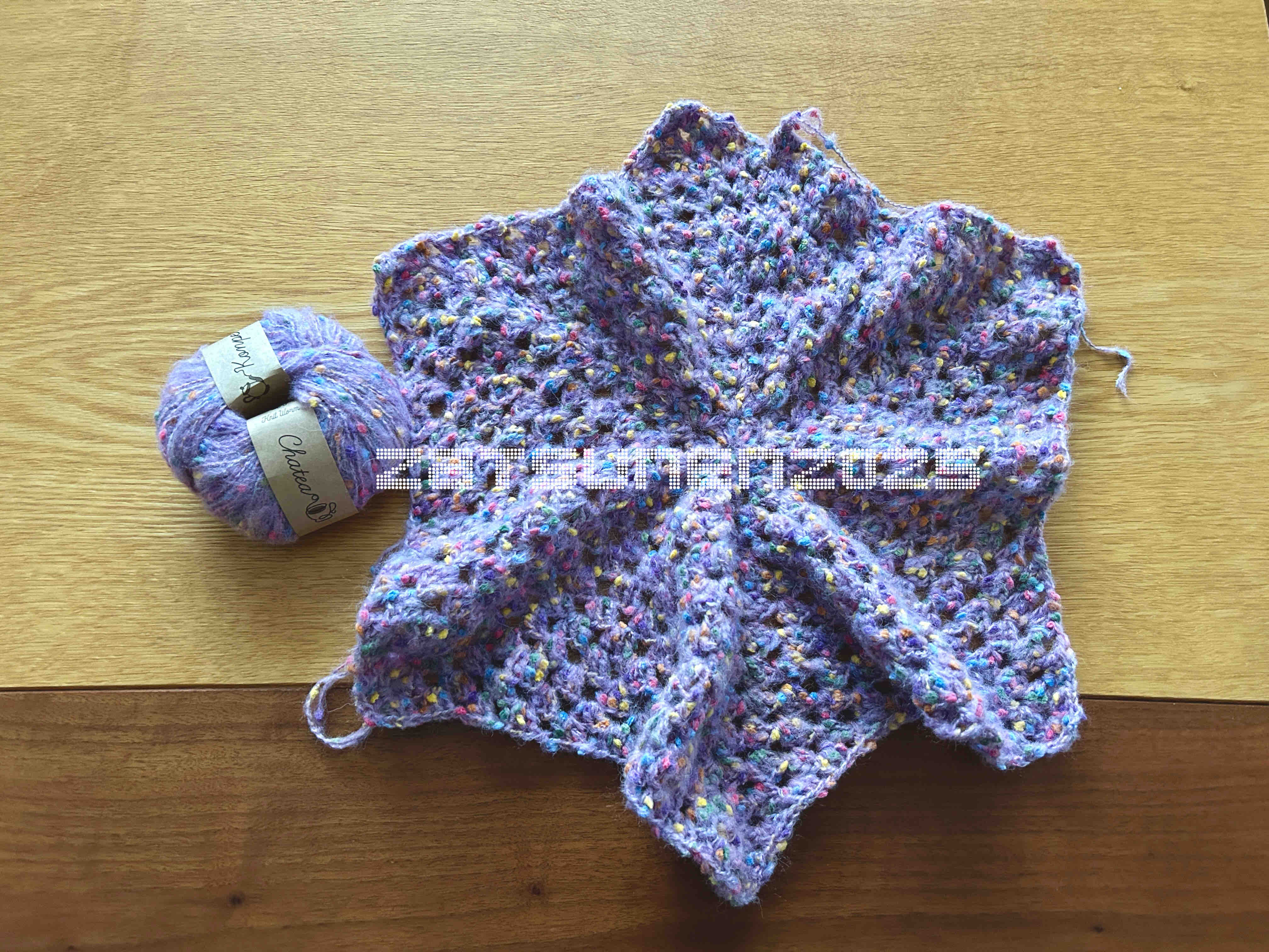 Hazy Bloomのスヌード編んでる最中、
